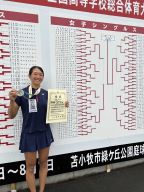 過去の好成績 全国高等学校総合体育大会2023(北海道総体) 女子シングルス 準優勝 2024-03-01 2025-10-07 新井愛梨(同志社国際高) 京都府高等学校体育連盟テニス部より、記念のトロフィーを授与 全国高等学校総合体育大会2023(北海道総体) 2023全日本ジュニアテニス選手権